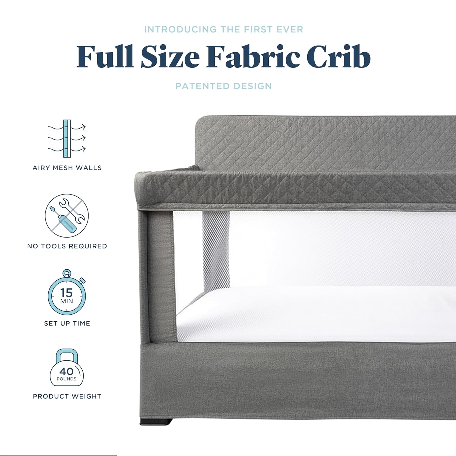Baby Delight Lunaire Full Size Crib | Breathable Mesh Baby Crib | Tool-Free Assembly Baby Bed | Charcoal Tweed