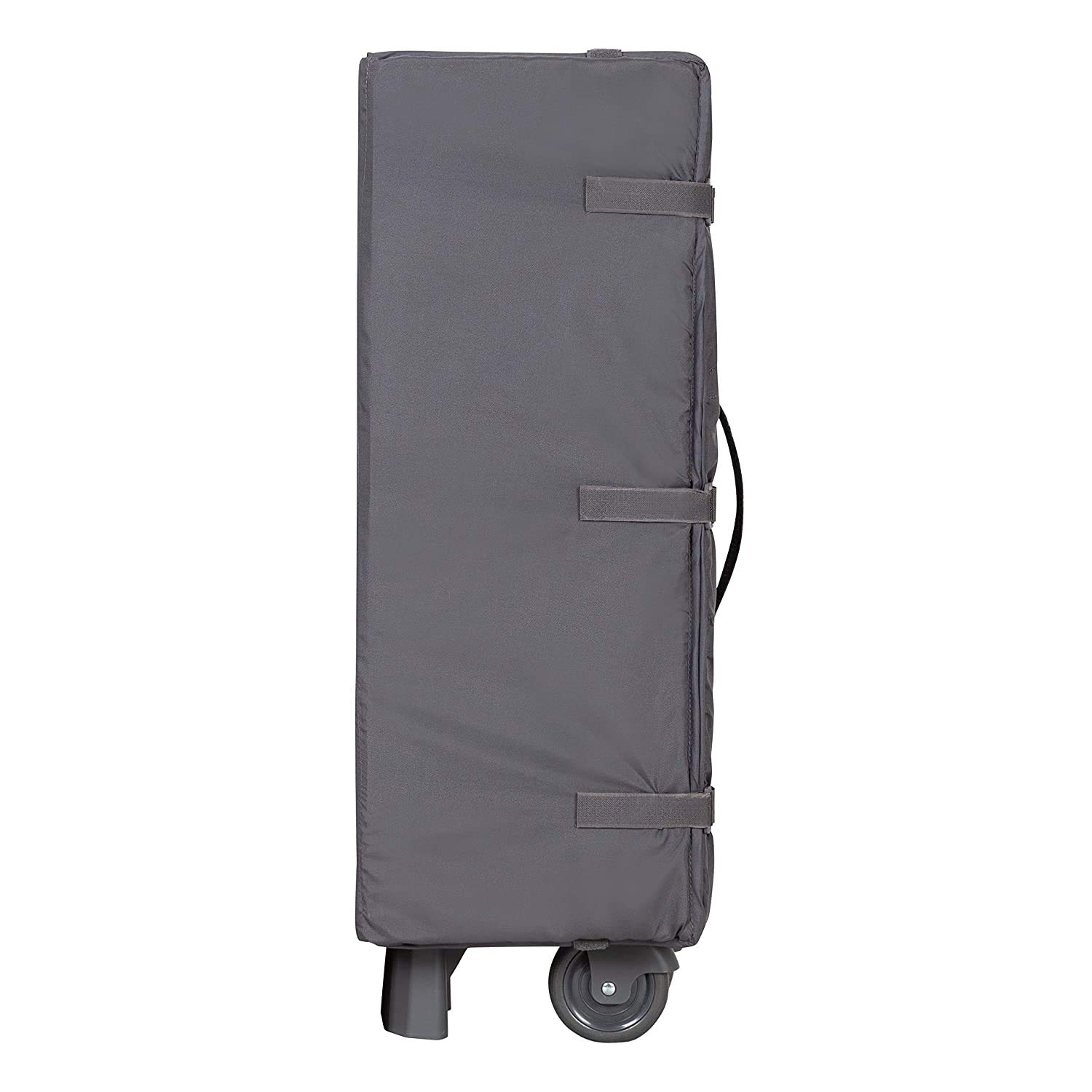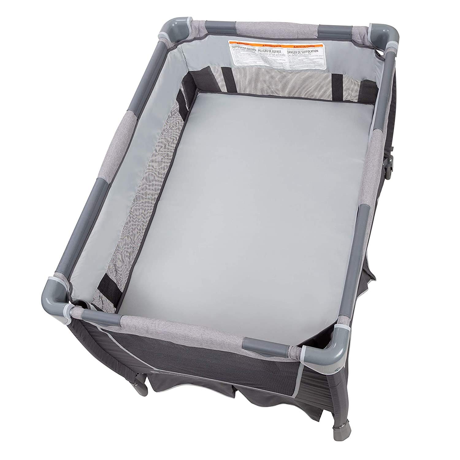 The playard includes a removable full bassinet, changing table, a deluxe parent organizer. Easy one-hand locking mechanism makes the playard stable and it can be moved from place to place with large wheels and secured with brakes. Also included is a convenient travel/storage tote bag. Your baby will enjoy the electronic music center with volume control, nightlight, and vibration which includes two styles of music and nature sounds.