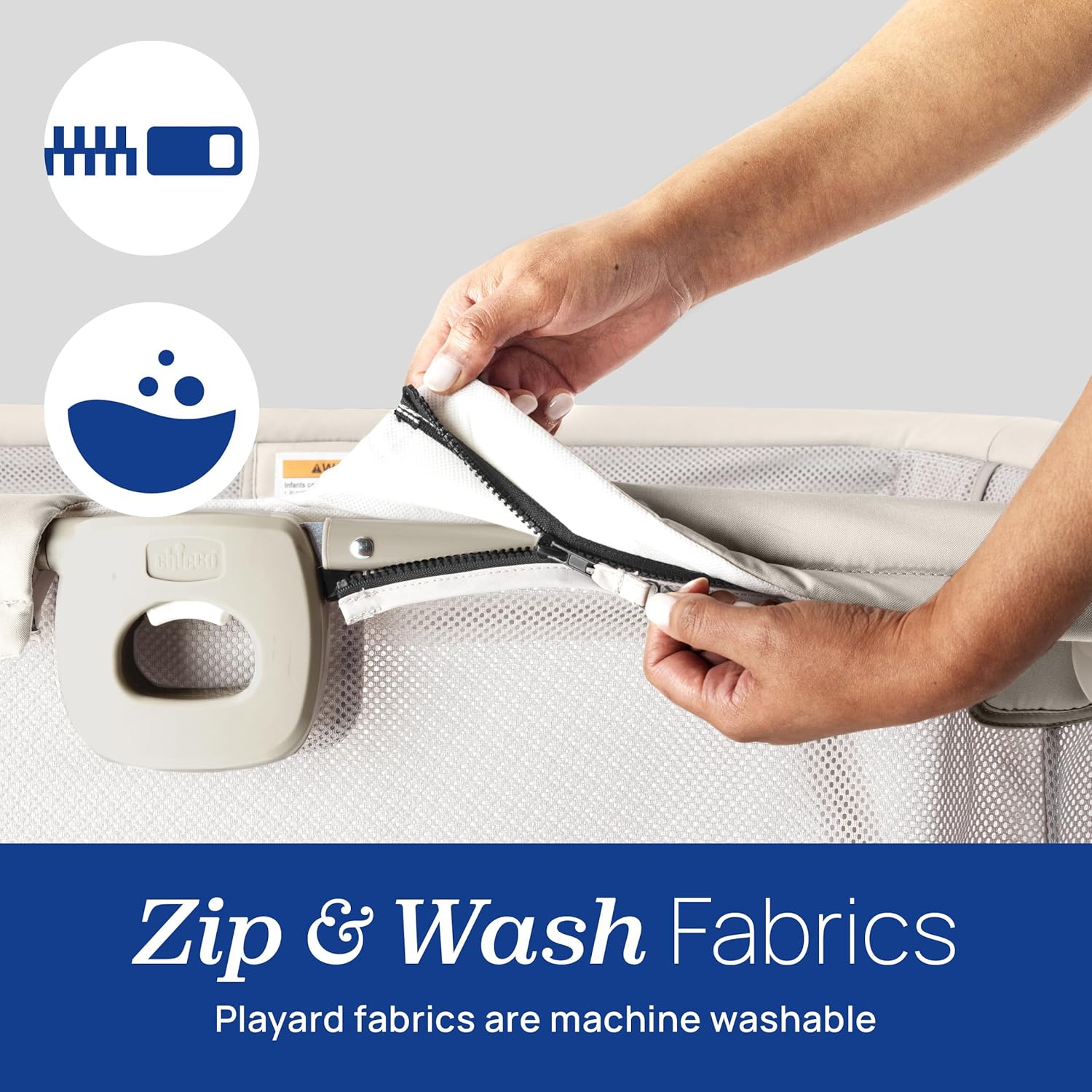 A zip-open side panel allows for gentle placement and soothing of younger babies, while allowing older babies and toddlers to crawl directly in and out.