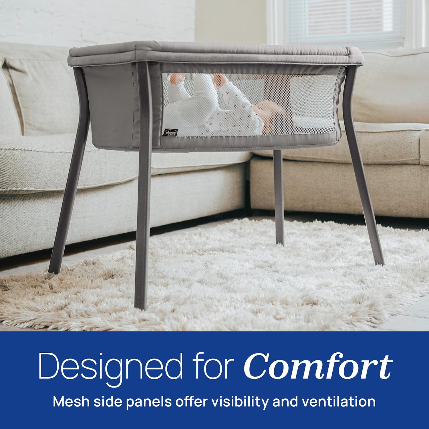 Chicco LullaGo Anywhere SE Portable Bassinet, Lightweight, Space-Saving with Waterproof Mattress and Fitted Sheet, Travel Bassinet for Baby | Clay/Grey
