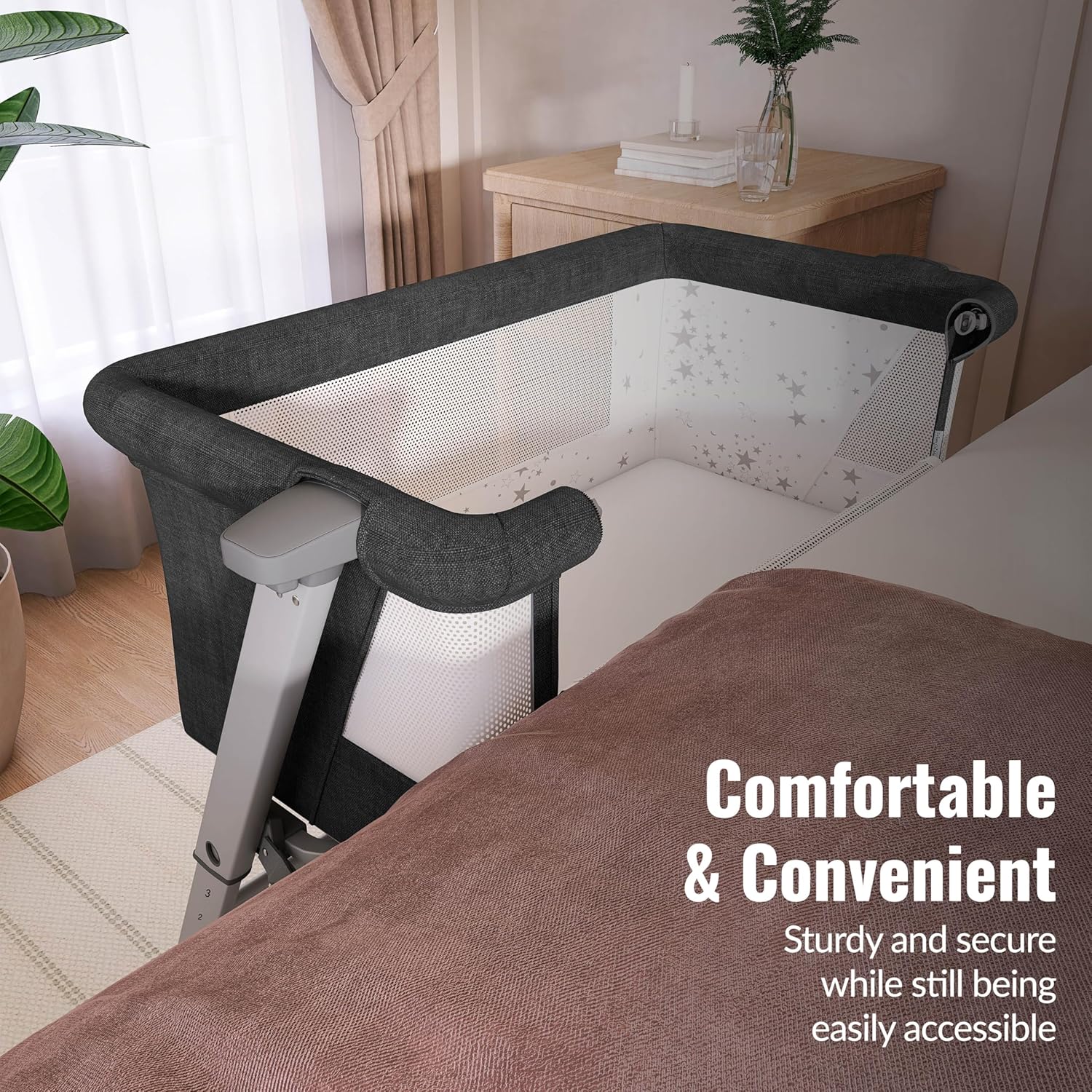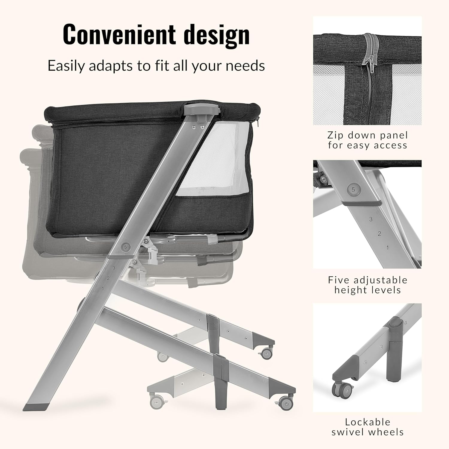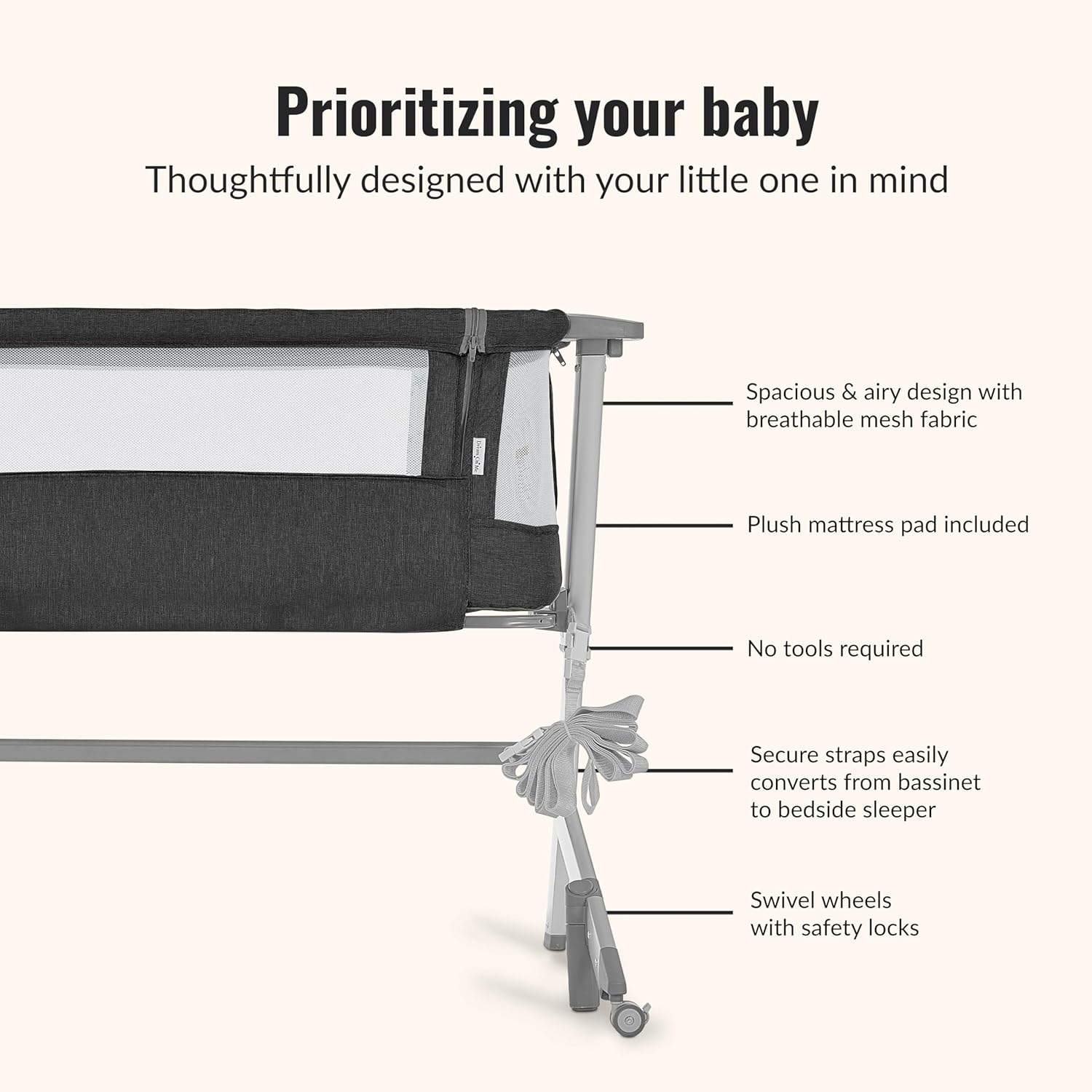 Dream On Me Skylar Bassinet and Beside Sleeper in Black, Lightweight and Portable Baby Bassinet, Five Position Adjustable Height, Easy to Fold and Carry Travel Bassinet, JPMA Certified