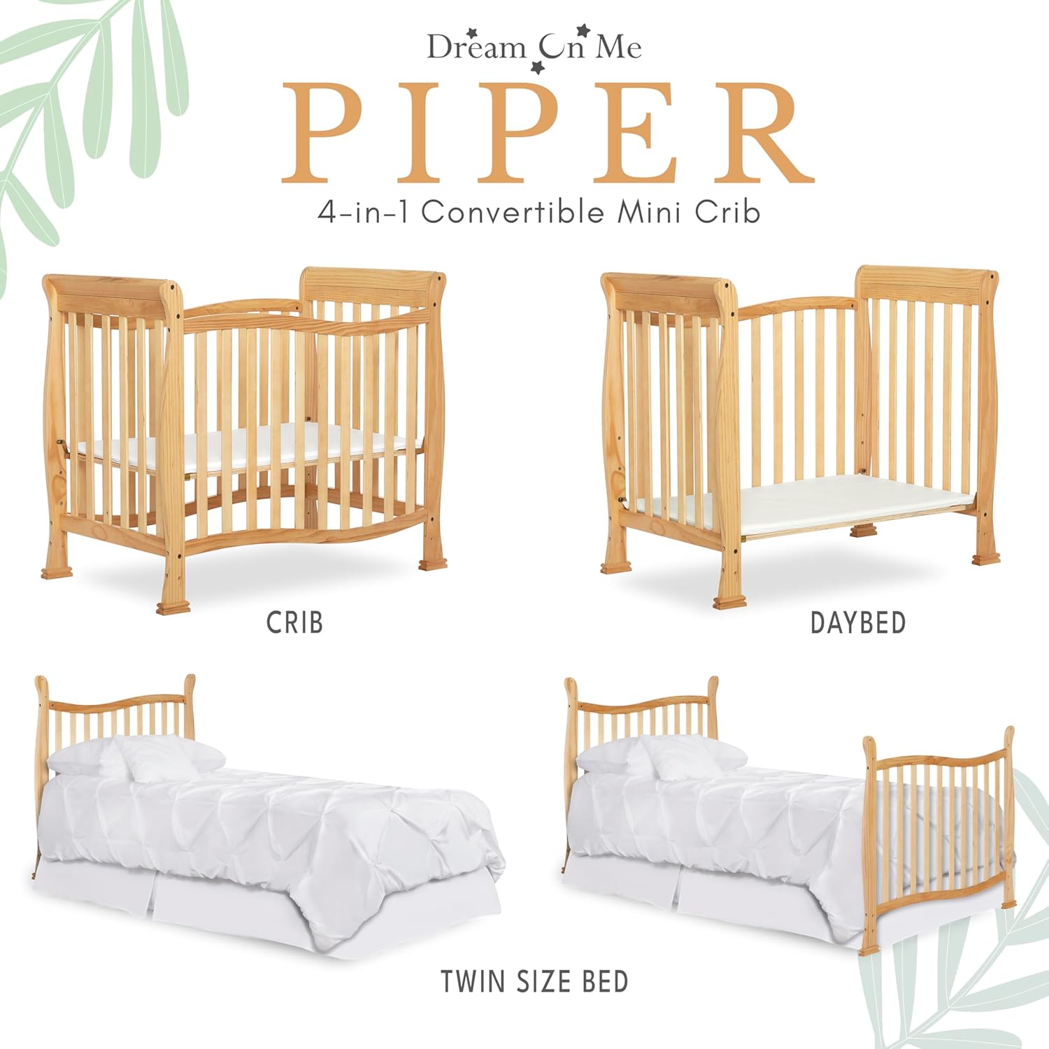 - CONVERTIBILITY OPTIONS: The Violet/Piper 4-in-1 Convertible Mini Crib keeps pace with your growing child. Starting as a mini crib, you can convert it into a mini daybed and twin-size bed (bed rails sold separately)