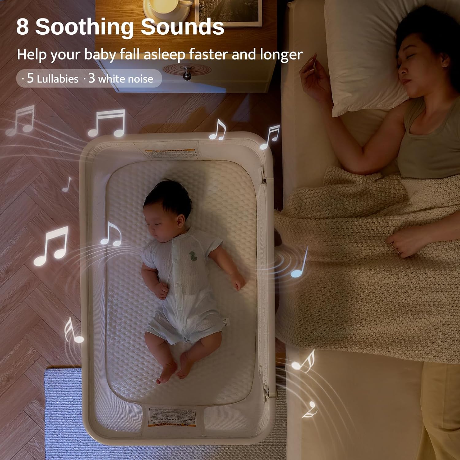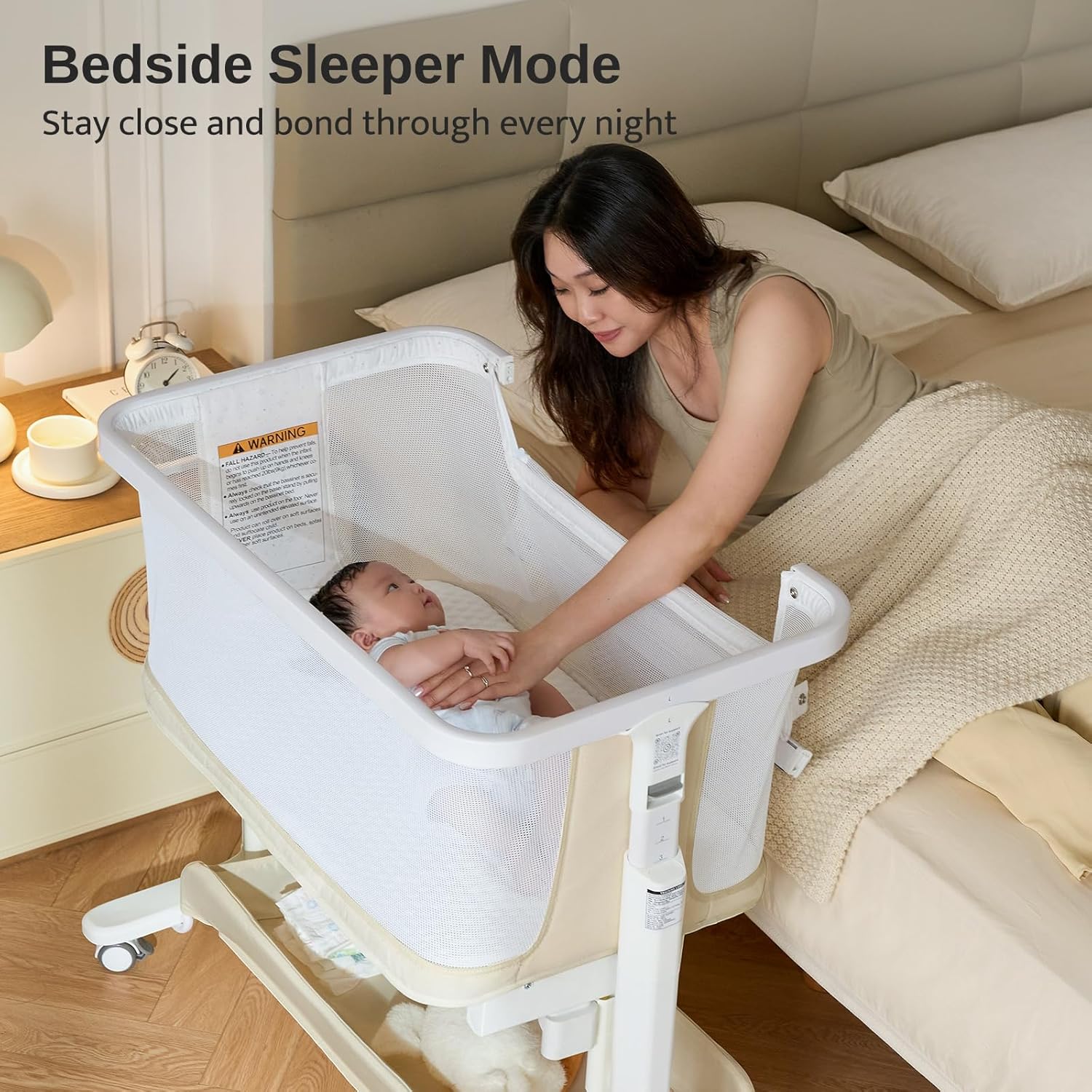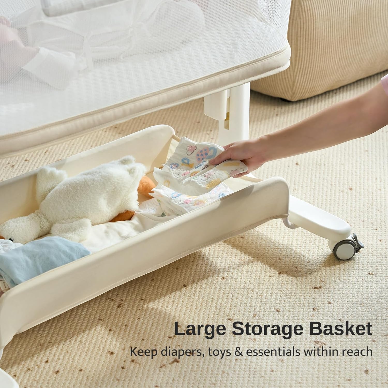 Electric Baby Bassinet, All-Mesh Bedside Sleeper with 3-Speed Auto Rocking, 8 Soothing Sounds, Remote Control, 5-Height Adjustable Baby Crib with Wheels & Storage for Newborn 0-6 Months, Beige