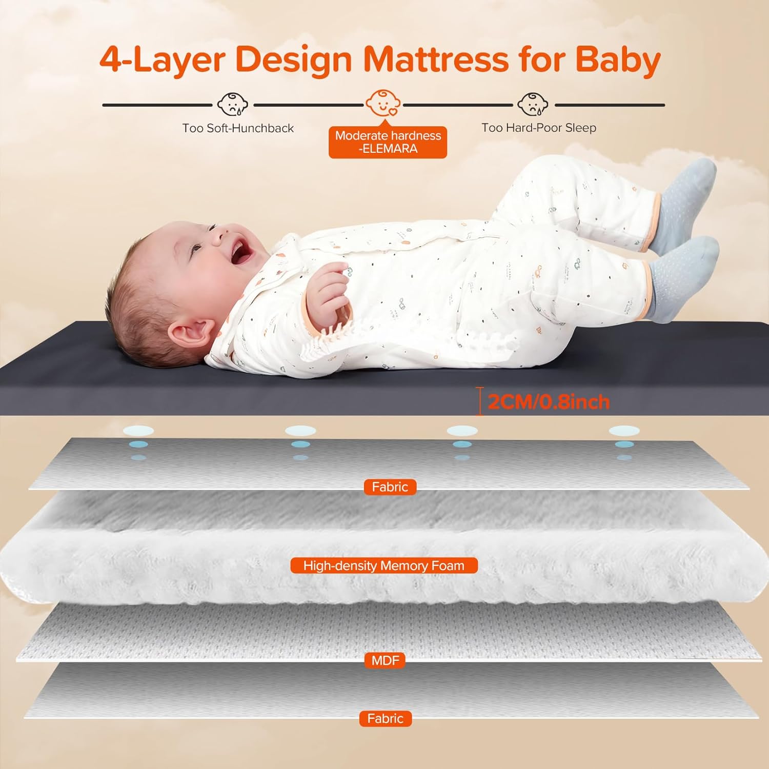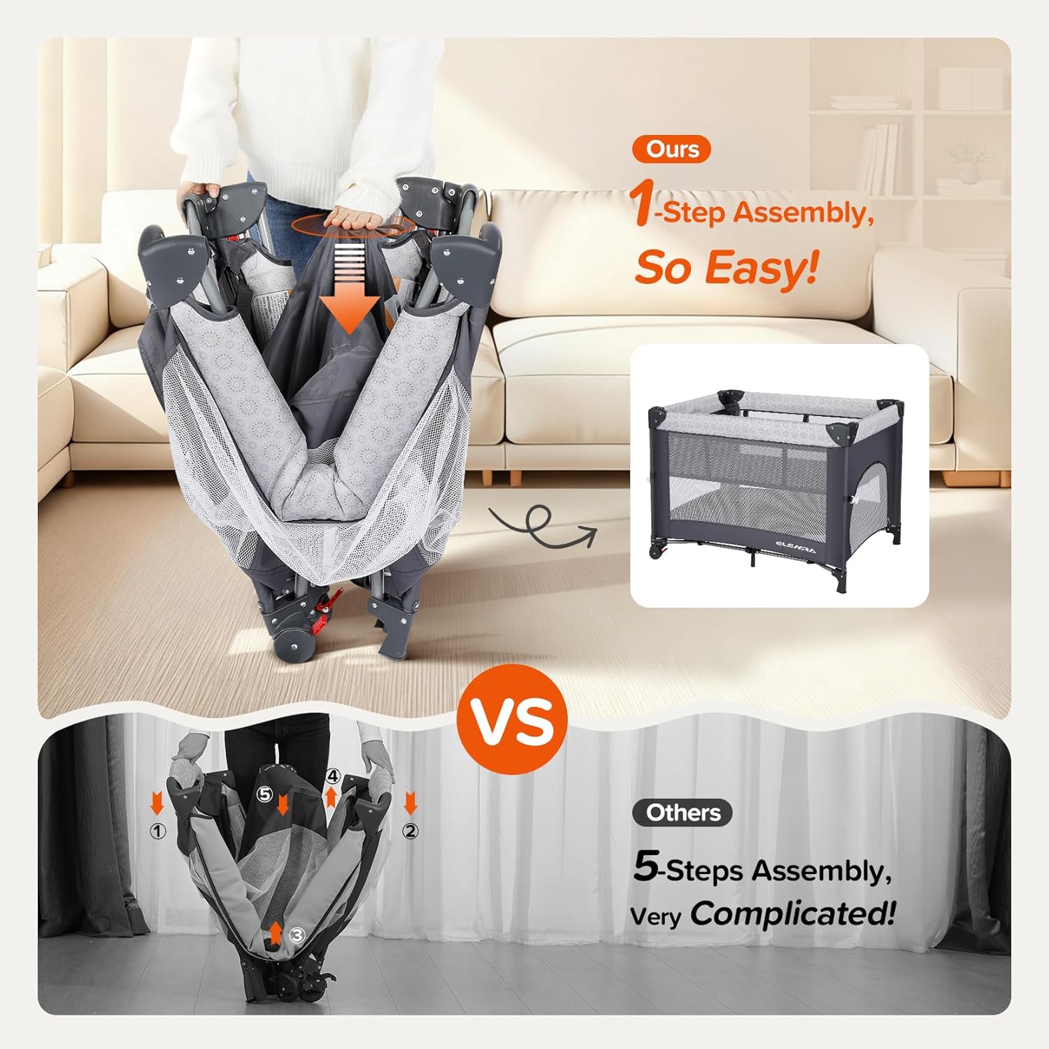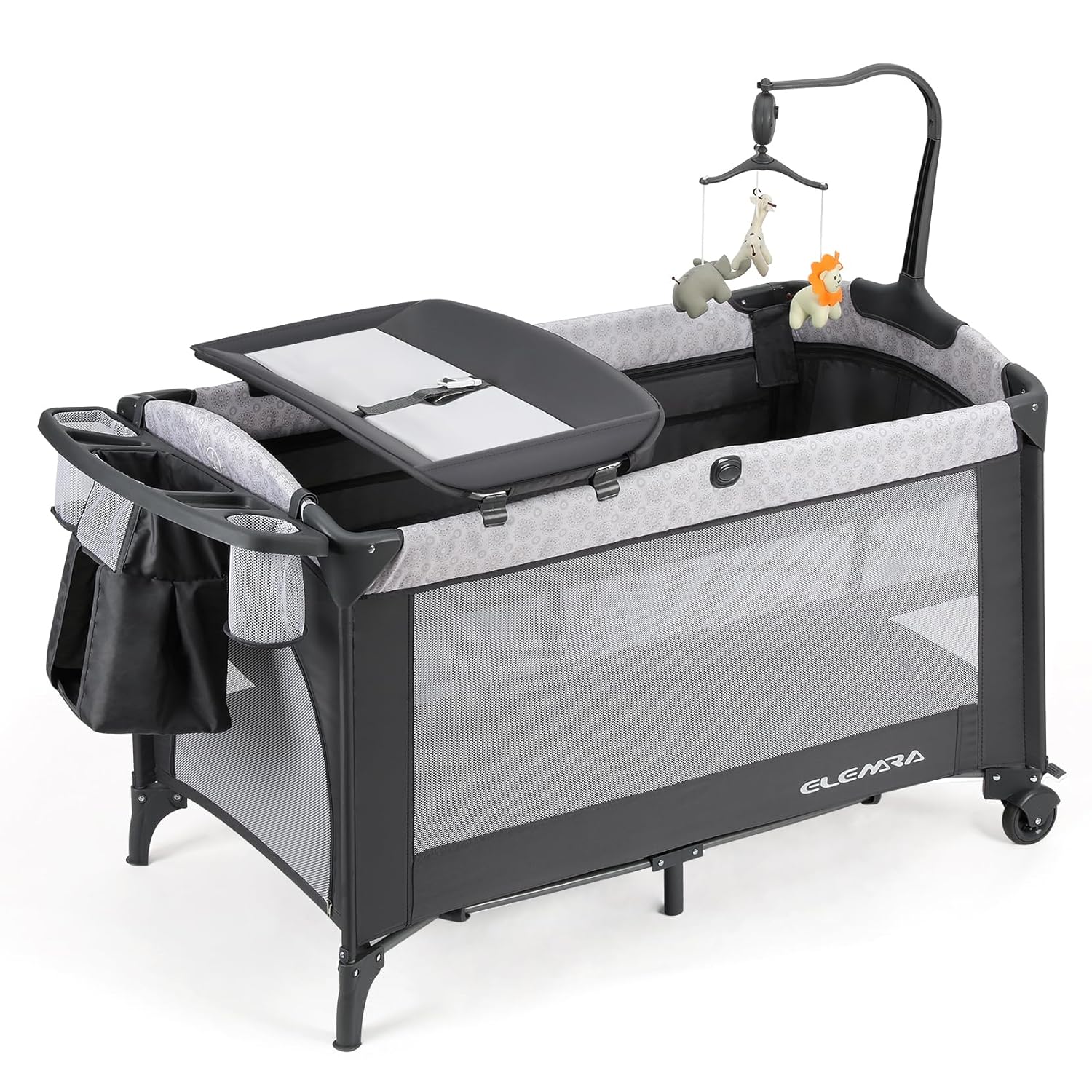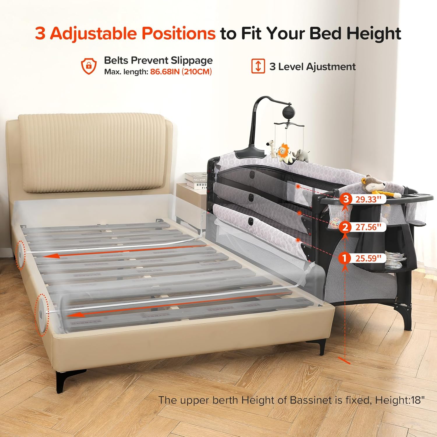 ELEMARA 4 in 1 Baby Bassinet Bedside Crib with Diaper Changer, Mattress, 1-Second Set up Bedside Bassinet with 3 Adjustable Height, Portable Crib with Storage/Toy Bar/Zip Door