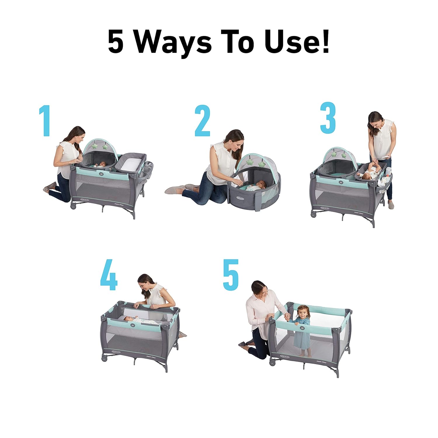 Graco Pack u2019n Play Travel Dome Playard, Portable Bassinet with UV Canopy, Fullu2011Size Infant Bassinet, Diaper Changer