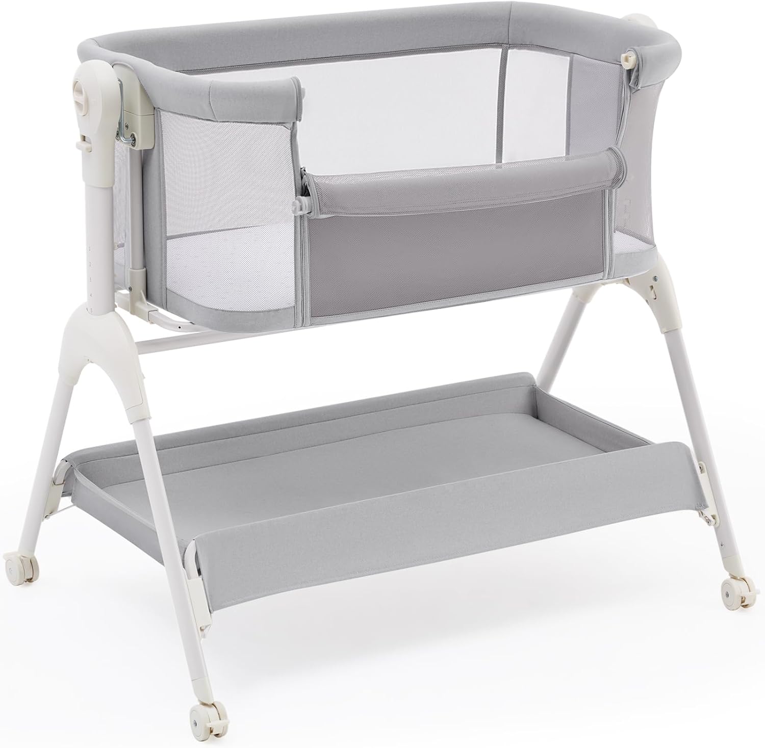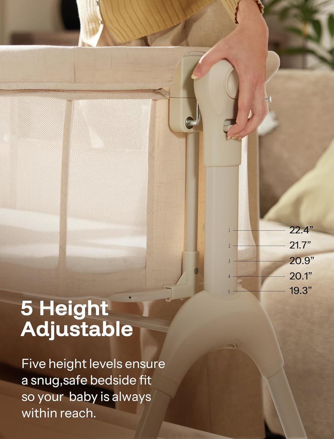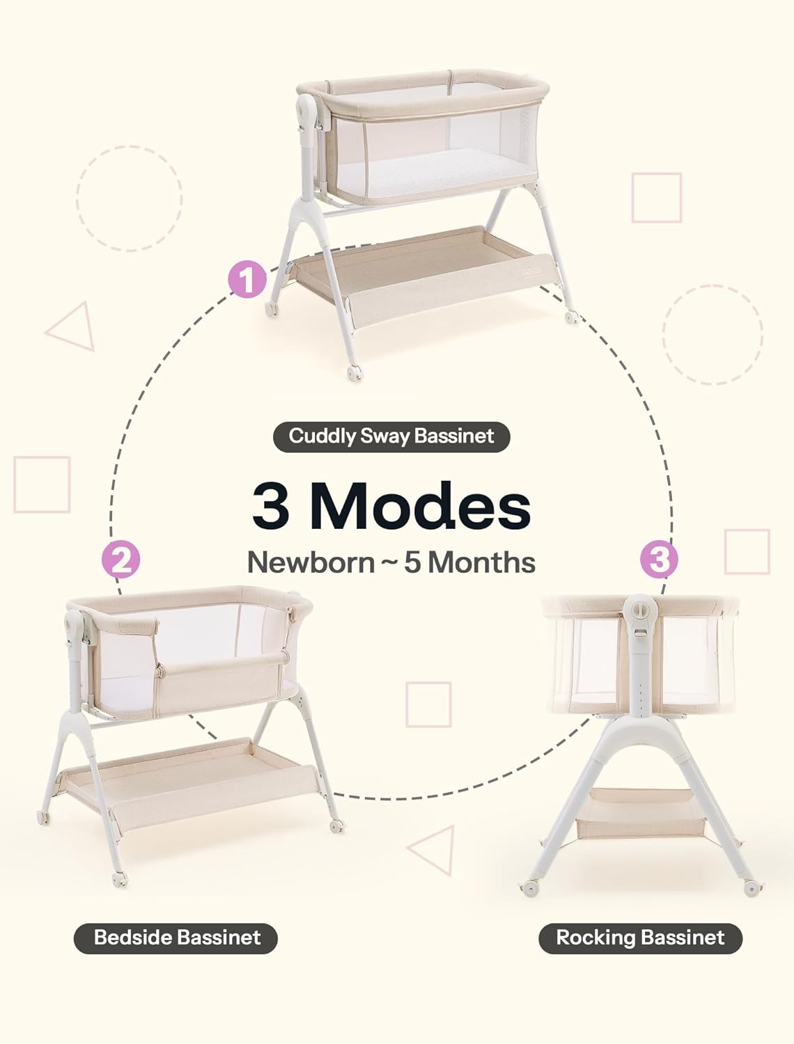 HARPPA Cuddly Baby Bassinet Bedside Sleeper, 3 in 1 Rocking Bassinet with Mattress and Soft Cover, Full Mesh Sides, 5 Height Adjustable with Wheels for Newborns, Beige
