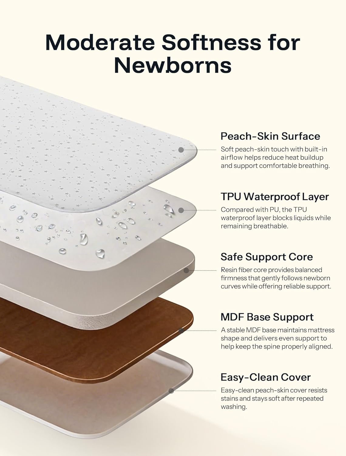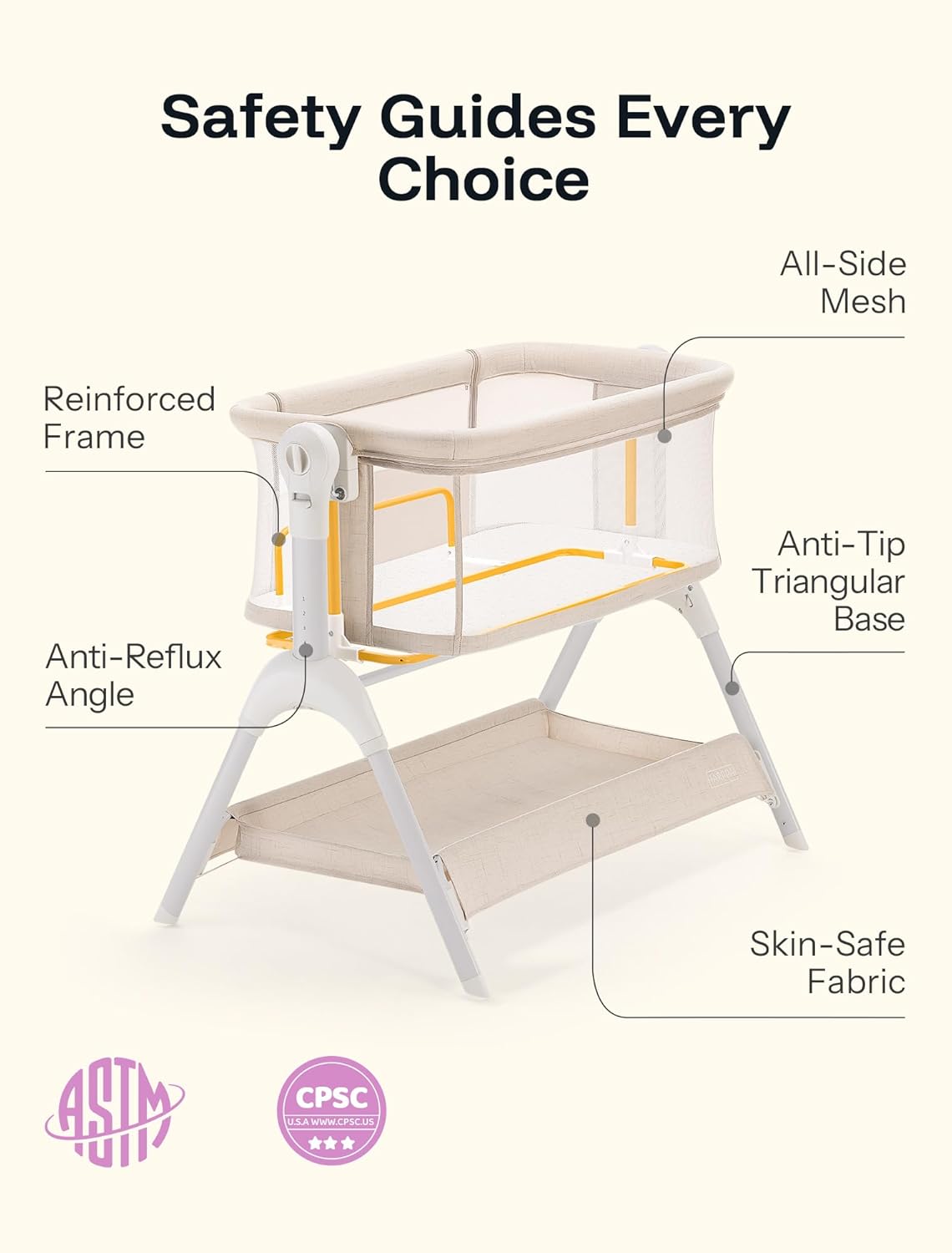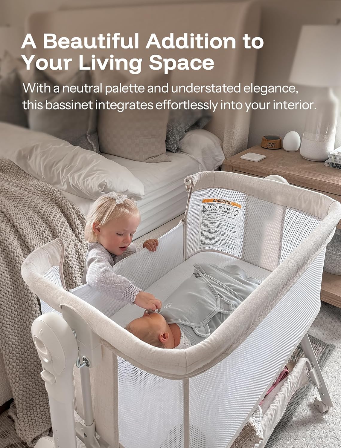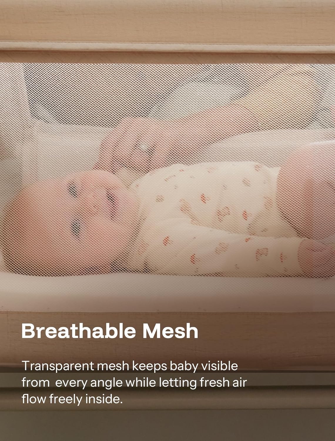 HARPPA Cuddly Baby Bassinet Bedside Sleeper, 3 in 1 Rocking Bassinet with Mattress and Soft Cover, Full Mesh Sides, 5 Height Adjustable with Wheels for Newborns, Beige