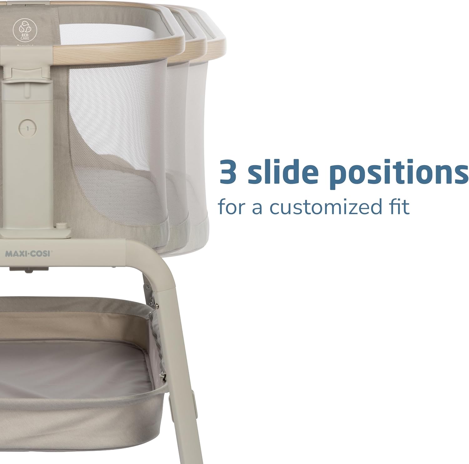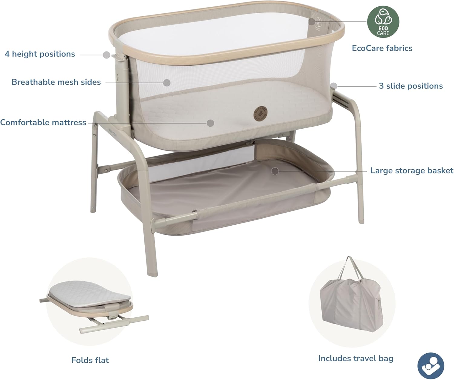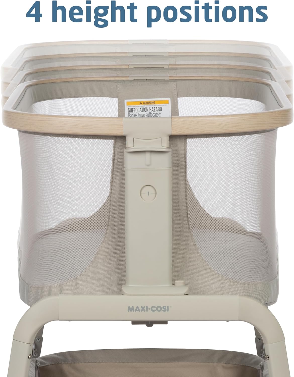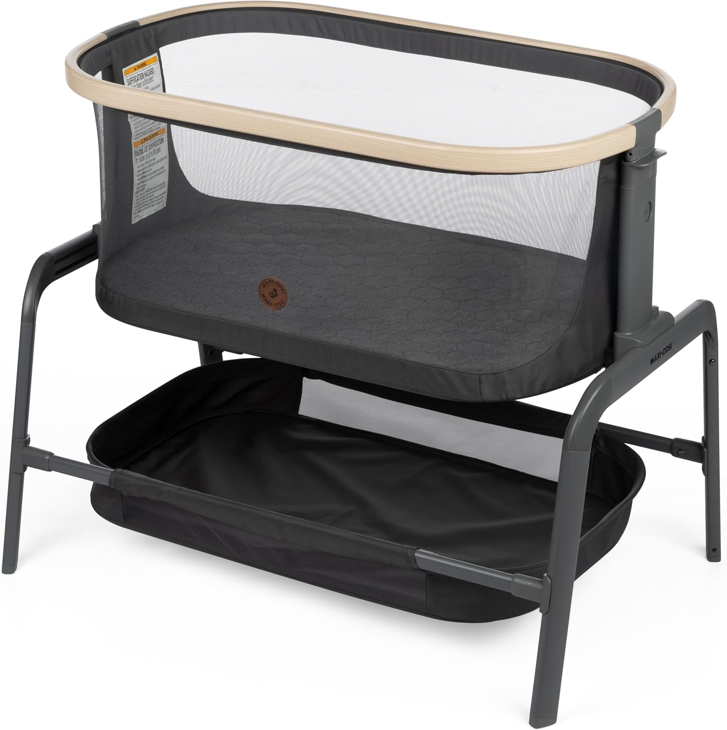 Maxi-Cosi Iora Baby Bassinets Bedside Sleeper, Portable Bassinet, Infant Bedside Sleeper Crib, Height Adjustable, Breathable Mesh, Large Storage Basket, Classic Oat