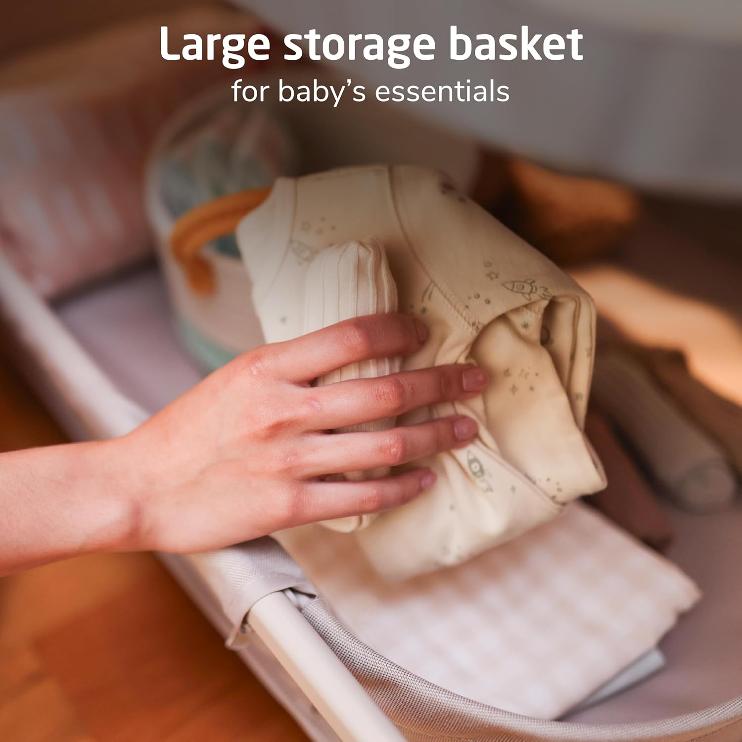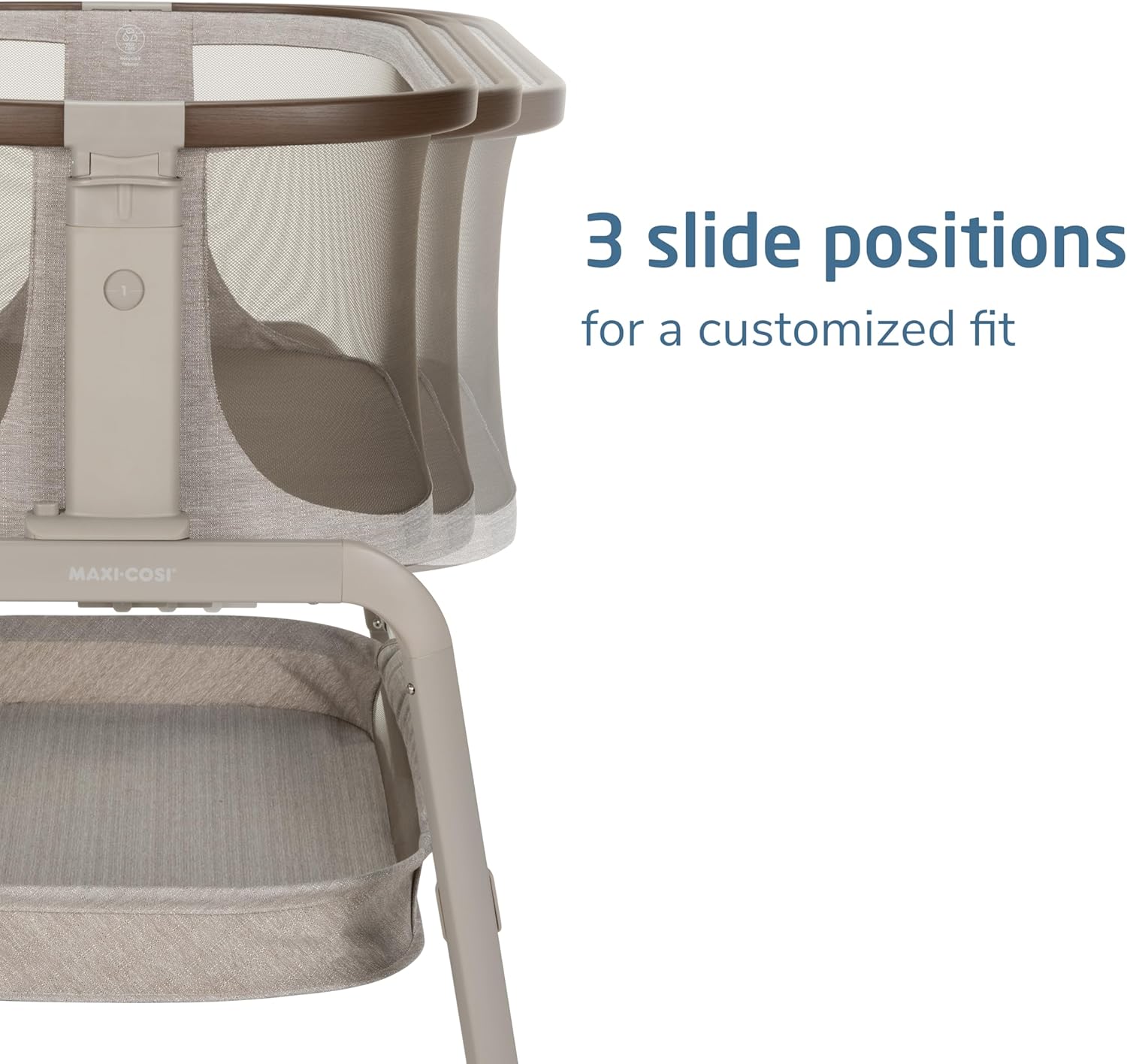 Maxi-COSI Iora Baby Bassinets Bedside Sleeper, Portable Bassinet, Infant Bedside Sleeper Crib, Height Adjustable, Breathable Mesh, Large Storage Basket, Truffle