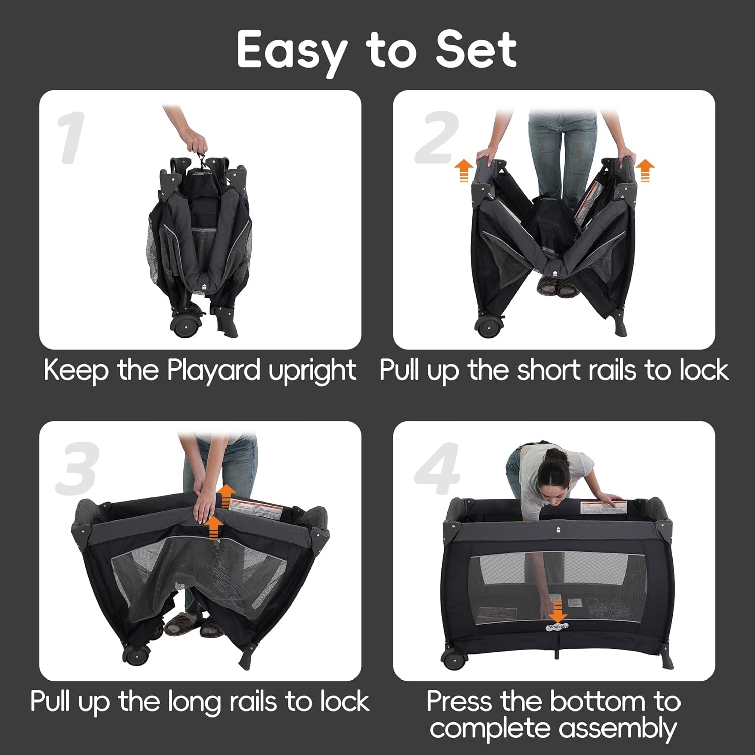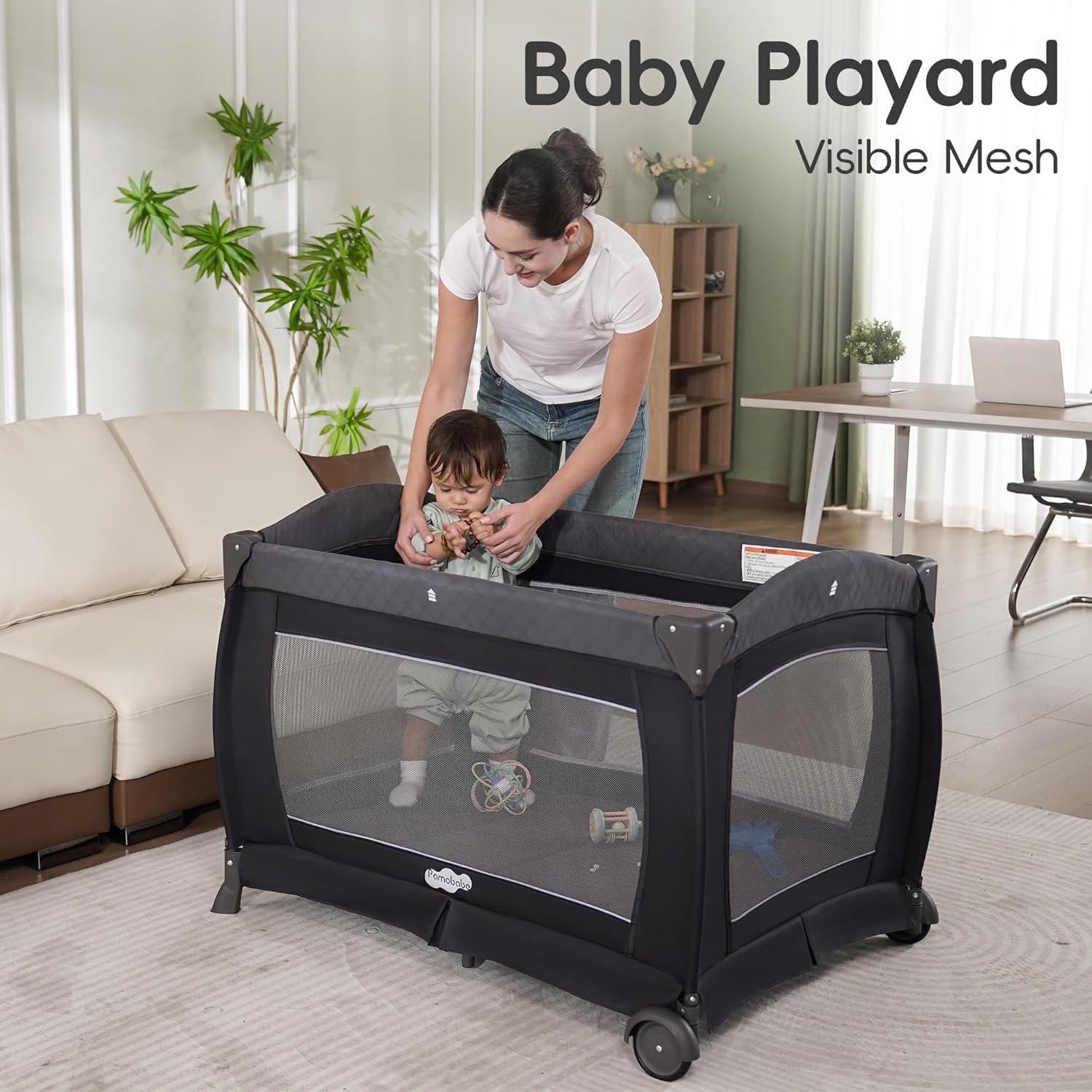 Pamo Babe Pack and Play 4 in 1 Playard Portable Playard Foldable Playpen for Baby and Toddler Portable Crib Mattress Diaper Changer for Newborn (Grey)