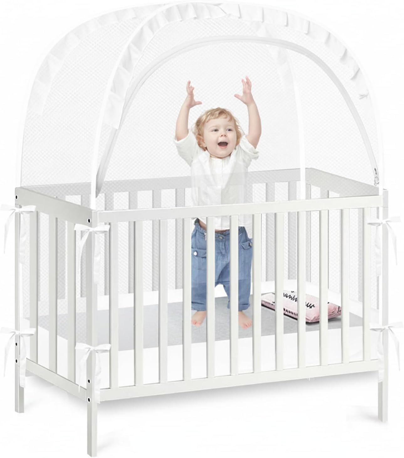 - Quick & Tool-Free Installation: No tools or complex assembly required! Simply unpack, untie the straps, and the tent pops open on its own. Place it in the crib and fasten it securely with the attached ties. Lightweight yet stable, it fits most standard cribs with ease.
