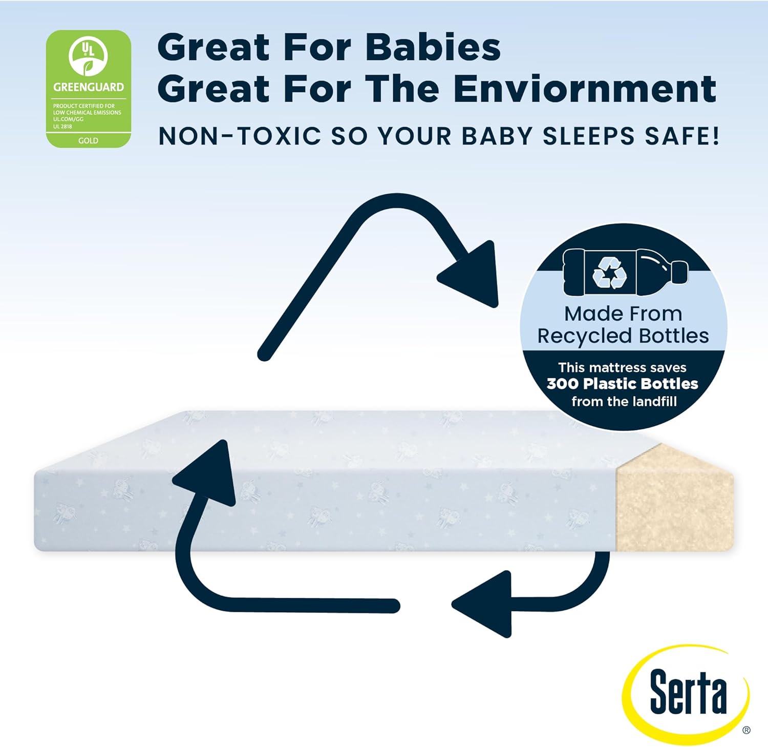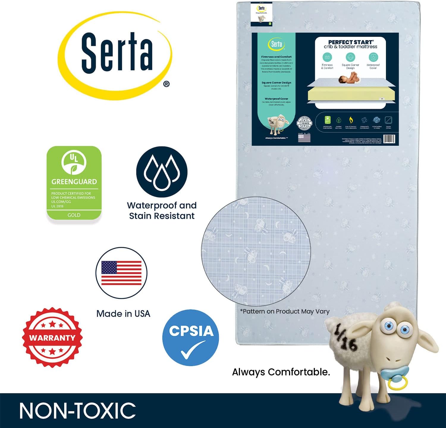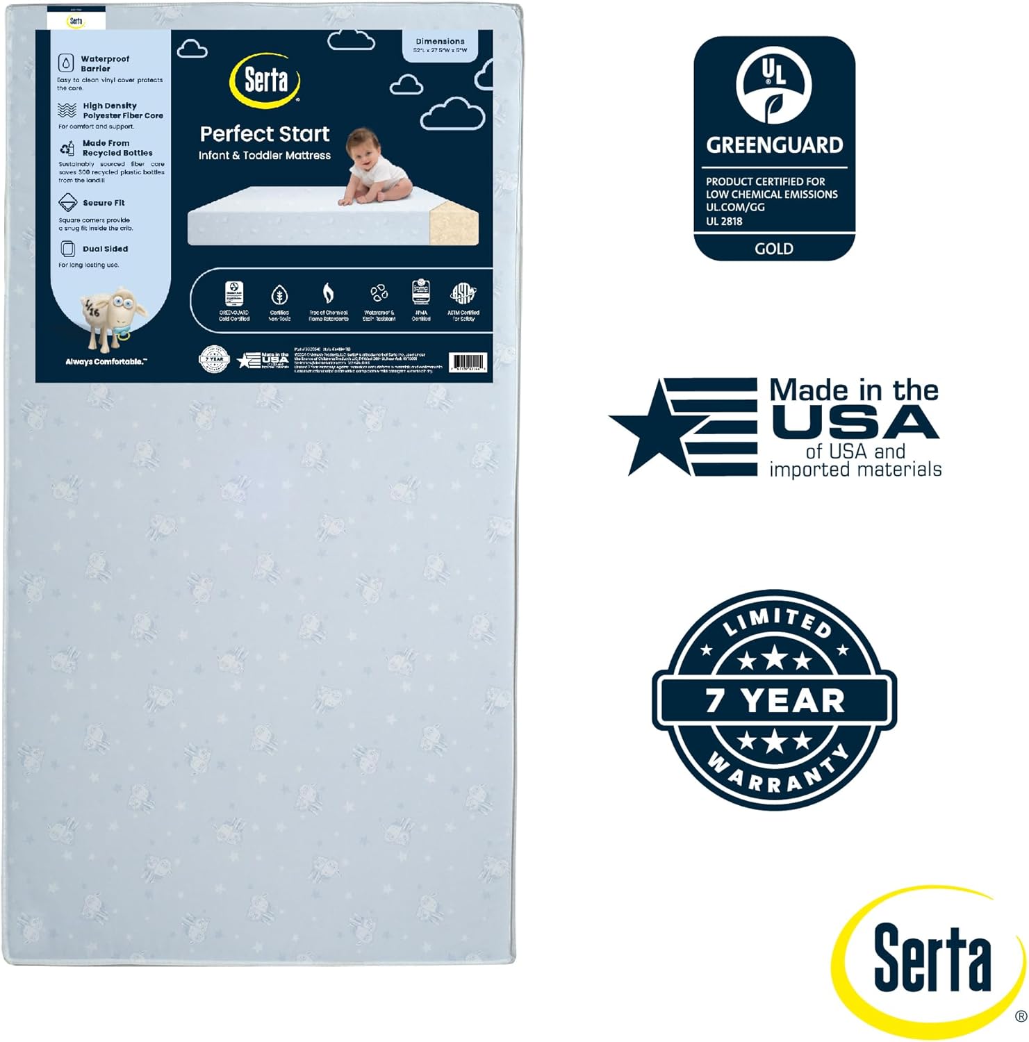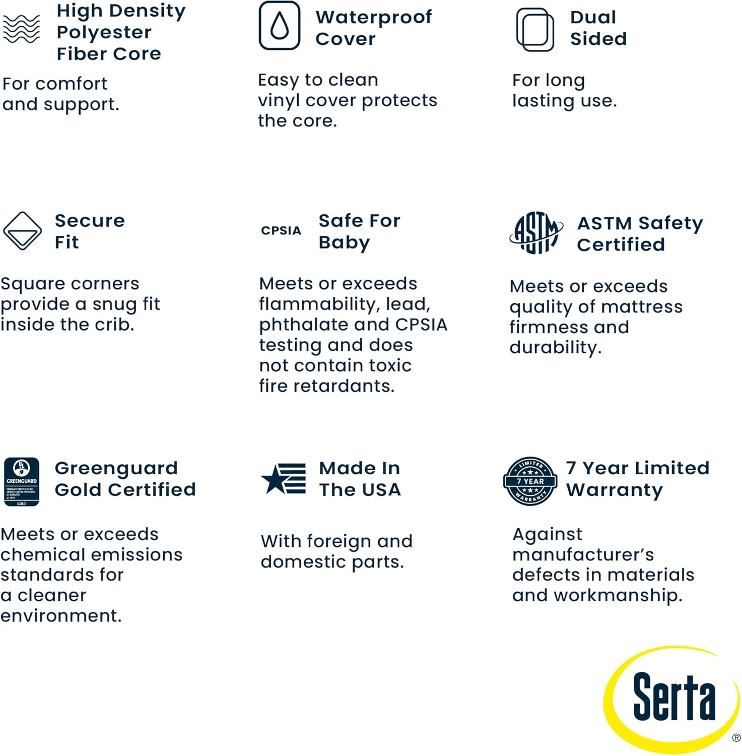 Serta Perfect Start Dual Sided Baby Crib Mattress & Toddler Mattress – Waterproof – 6″ Premium Sustainably Sourced Fiber Core – GREENGUARD Gold Certified u2013 7 Year Warranty – Made in USA