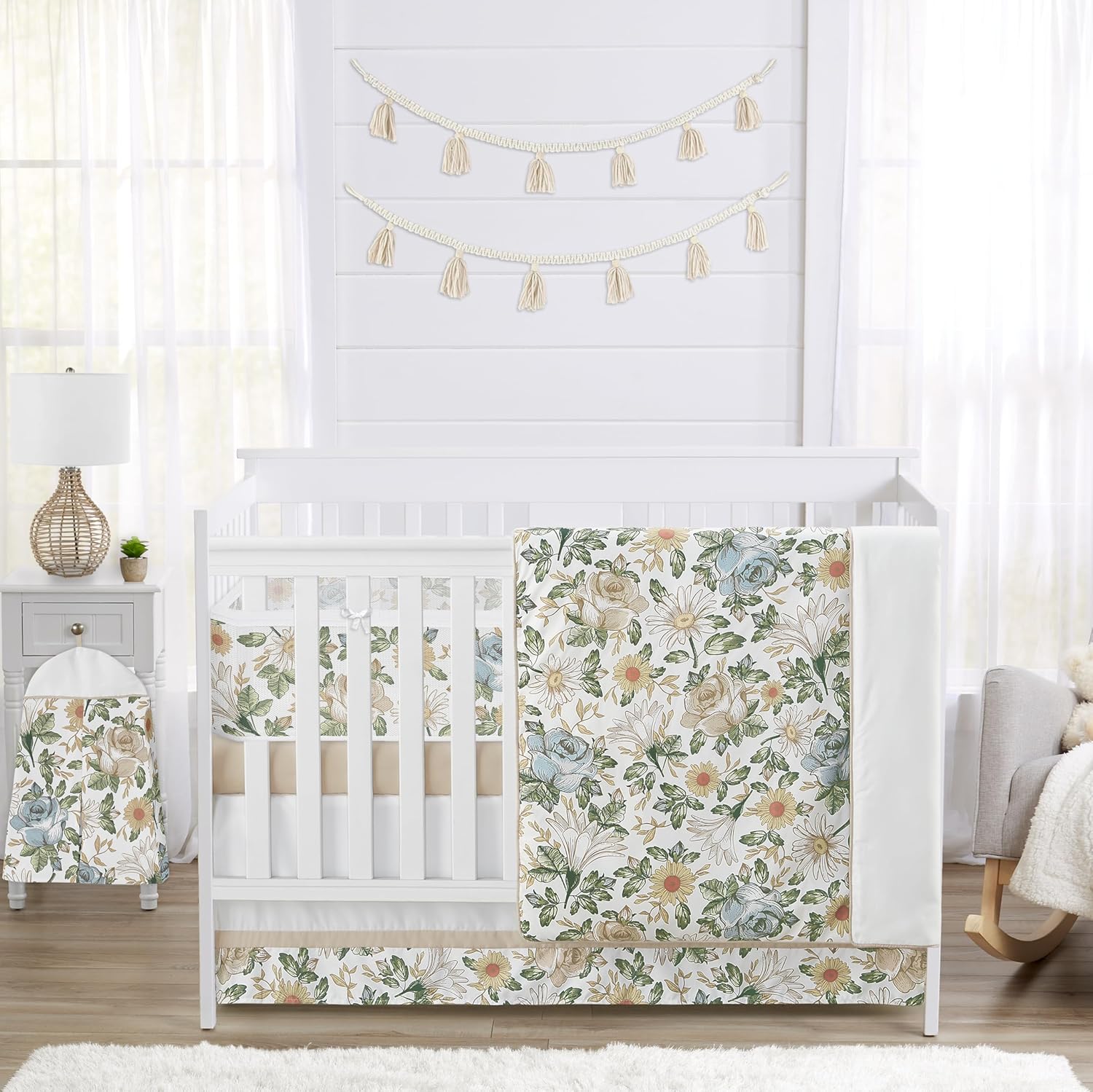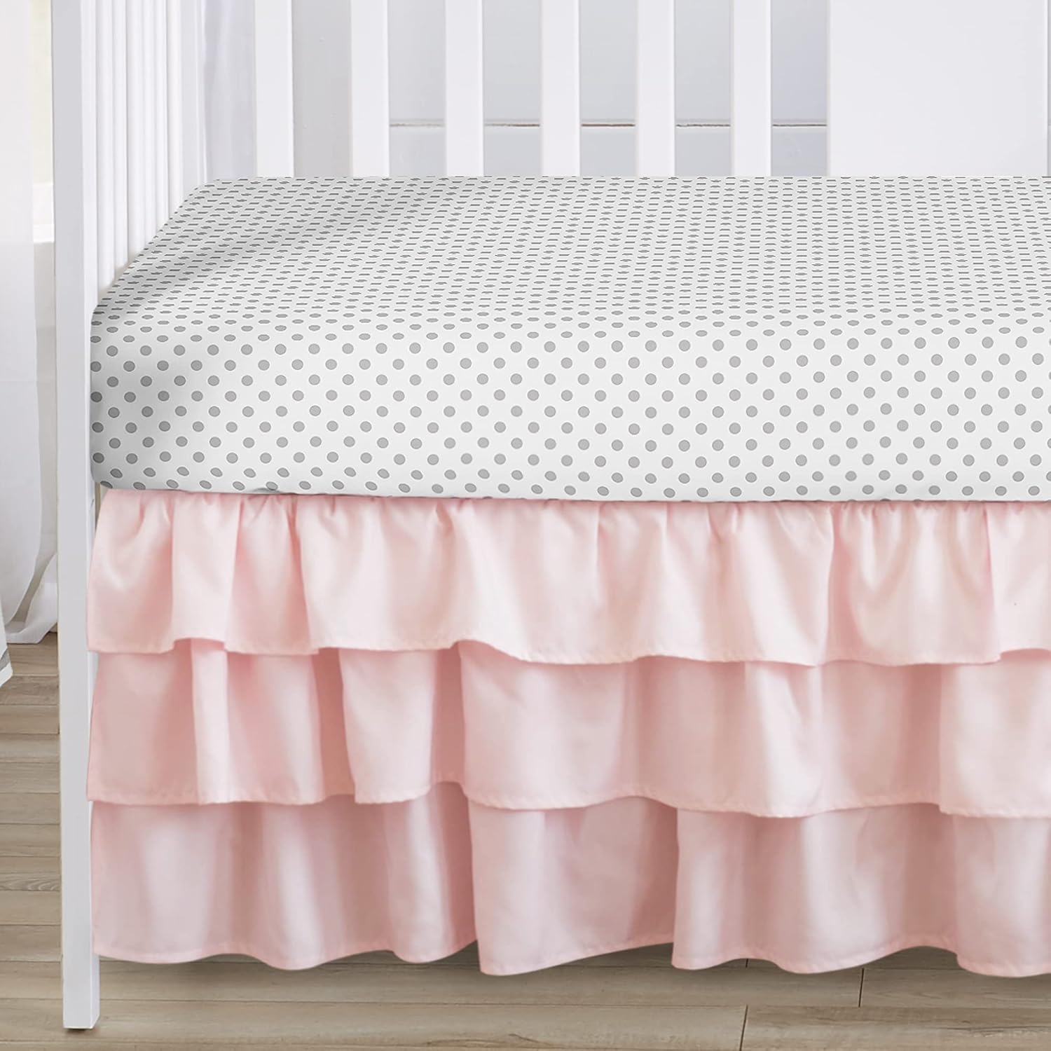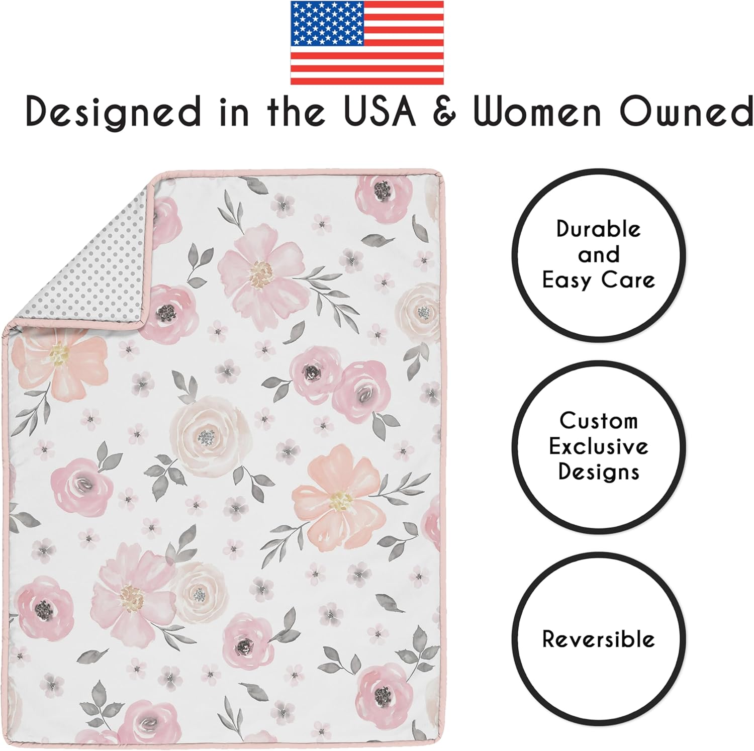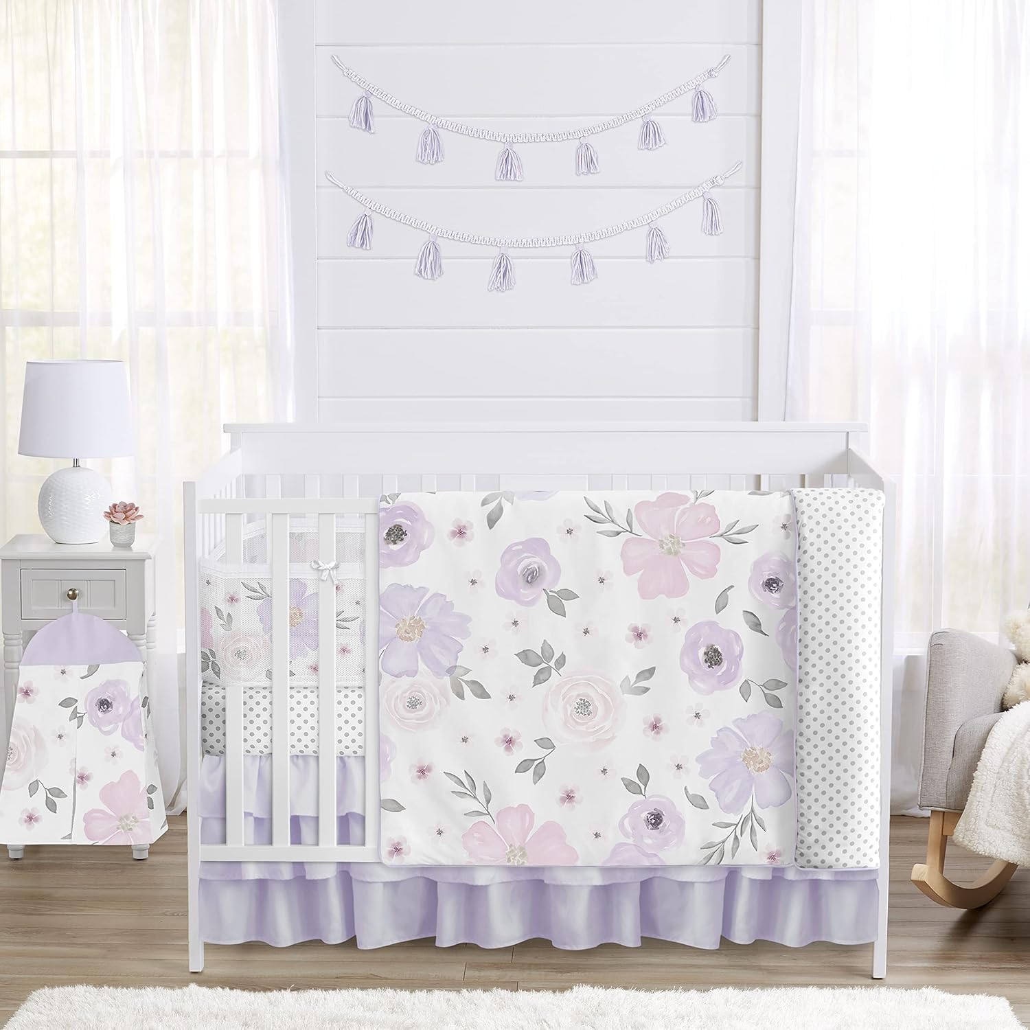 Sweet Jojo Designs 6-Piece Baby Crib Bedding Set (Pink/Grey Boho Floral) for Girls, Infants/Nursery incl. Blanket, Fitted Sheet, Skirt, BreathableBaby Breathable Mesh Crib Liner (Watercolor Polka Dot)